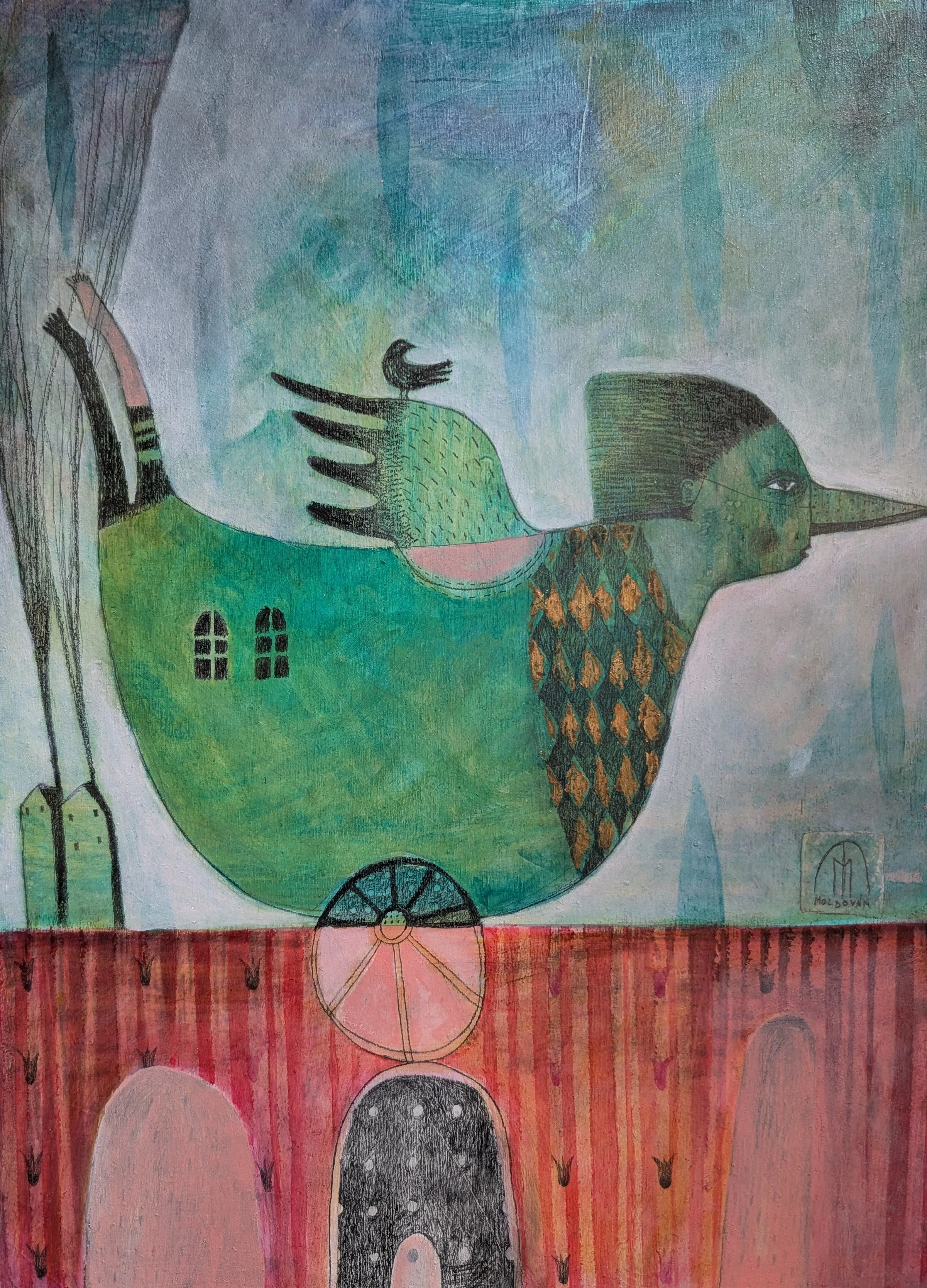 KINGDOM, acrylic, acrylic ink, pencil on wooden panel. 20 x 24”. 750.00