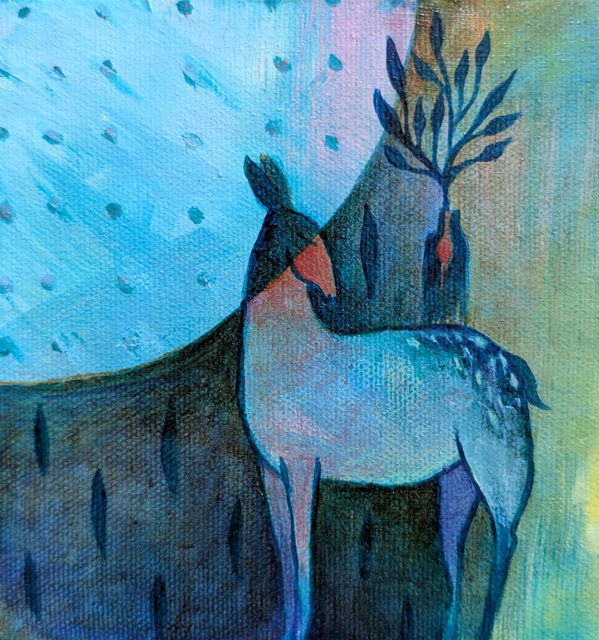 acrylic, acrylic ink, pencil on wooden panel. 6x6”